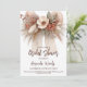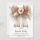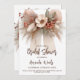 Chic boho carte nuptiale avec fleurs neutres, gazon de pampas et tons doux terreux, parfait pour célébrer la mariée à être avec un style élégant moderne.