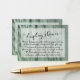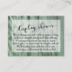 Si vous organisez une fête prénuptiale décontractée ou de style champêtre avec un thème "pas d'emballage de cadeau" pour une future mariée, cette carte rustique pourrait être le choix idéal pour vous. En utilisant une police de caractères élégante et moderne, j'ai d'abord ajouté un en-tête de typographie graphique qui indique "fête prénuptiale" sur le devant, et "à" et "de la part de" pour le côté étiquette de cadeau. Le champ de modèle a été configuré pour offrir des instructions aux invités qui n'emballent pas leur cadeau ; n'hésitez pas à modifier le libellé comme vous le souhaitez. Il existe de nombreuses alternatives populaires à ce texte, si vous souhaitez un changement. L'arrière-plan a été recouvert d'une photo que j'ai prise d'un mur de cabanon vert avec un éclairage tamisé provenant des feuilles des arbres voisins. Un rectangle blanc