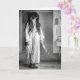 Carte de vœux effrayante avec une photo en noir et blanc d'une jeune femme à l'air dérangé tenant un couteau. À l'intérieur se trouve un message humoristique sombre qui peut être personnalisé pour dire ce que vous voulez.
