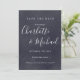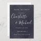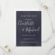 Avec des noms de style signature, cette élégante carte de faire-part de mariage sur tableau noir peut être personnalisée avec les informations de votre jour de mariage spécial en lettrage blanc chic. Conçue par Thisisnotme©