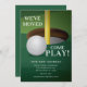 Nous avons bougé ... venez jouer faire-part mobile avec une balle de golf sur les verts.