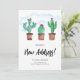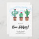 Cette carte de faire-part mobile est décorée avec des cactus aquarelle, un ciel bleu, et New Address dans la typographie stylisée. Facilement personnalisable avec votre nouvelle adresse. Utilisez l'outil de conception pour modifier la taille, le style ou la couleur du texte. En créant notre oeuvre, vous ne trouverez pas cette image exacte d'autres créateurs. Aquarelle originale © Michele Davies.