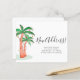 Vous déménagez en Floride, à Hawaii ou dans une île tropicale ? Cette carte postale à budget tropical en mouvement dispose de palmiers aquarelles décorés de lampes à cordes colorées et d'une typographie stylisée. Facile à personnaliser. Aquarelle originale © Michele Davies.