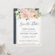 Cette carte de faire-part de mariage chic présente une belle composition florale aquarelle rose. Conçue pour correspondre à notre collection de mariage Bloomsbury. Personnalisez-la facilement et rapidement avec vos informations, il suffit d'appuyer sur le bouton personnaliser pour réorganiser et formater le style et l'emplacement du texte. (c) The Happy Cat Studio