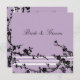 Invitations de mariage dans élégant motif floral violet, noir et blanc délicat. Personnalisable avec les détails de votre cérémonie.