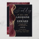 Carte faire-part de mariage simple design noir foncé arrière - plan avec agate rouge bordeaux design mariage moderne minimaliste carte moderne design et tendance noir floral