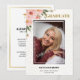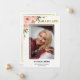 Ce faire-part de graduation présente une fleur rose, la photo du diplômé, son nom, son année de graduation, ainsi que plus d'informations et de messages sur le dos.