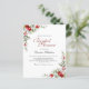 Cette carte de faire-part élégante de douche de mariée présente des feuilles de greenery aquarelle et des baies sauvages rouges vives sur fond blanc avec un texte manuscrit tendance. Le verso de cette invitation est blanc avec des brindilles de forêt de greenery. Profitez-en.