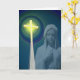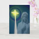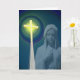 Cette belle carte a une photo de la Bienheureuse Marie avec une croix brillante et des cercles de lumière autour de la croix. C'est une façon merveilleuse de féliciter une femme qui prend ses voeux pour devenir une religieuse.