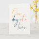 Ces cartes de voeux pliées de 5" x 7" comportent un espace réservé pour insérer la longueur de la sobriété avec l'accueil avant, "Un jour à la fois", dans des couleurs vives. L'intérieur : Félicitations pour (entrer dans le temps sobre) sobre.