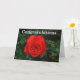 Une rose rouge vif vient avec le message de "Félicitations" sur cette belle carte de voeux