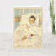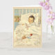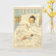 Carte de félicitations rétro/vintage pour bébé. Adorable bébé blotti dans son lit. Carte parfaite pour accueillir un nouveau-né ou pour célébrer un anniversaire !