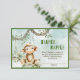 Aidez le parent à être avec la collecte de fournitures nécessaires pour bébé en hébergeant une tombola de couches ... annoncez-le avec cette adorable carte d'enceinte que vous pouvez inclure avec l'invitation baby shower. Il présente notre adorable design de singe bébé et des vignes de jungle en vert.