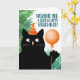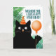 Carte de fête d'anniversaire avec chat noir et bal