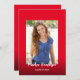 Ce modèle de carte de remise de diplôme moderne minimaliste rouge et blanc présente une écriture calligraphique et une photo sur le devant de la carte. Une photo supplémentaire au verso et un texte facile à modifier pour le personnaliser.