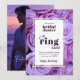 Moderne minimaliste violet Rose photo bague de chasse Fête des mariées jeu Carte à plateau Faire pop vos détails de l'événement avec cette élégante carte à plateau! Cette carte personnalisable 5x7 dispose d'une belle aquarelle en toile de fond de roses violets romantiques, parfaitement encadrée par une disposition blanche propre. L'avant est conçu avec le titre amusant du jeu, "Ring hunt", placé dans un script élégant, avec une illustration charmante de bague et des règles de jeu claires, suivi de la phrase amusante, "happy chasse!" Il est personnalisé avec le nom de la future mariée et les mots "Fête des mariées". Cette belle carte est le moyen parfait pour que les invités s'adonnent à une activité de douche nuptiale amusante. Mais la meilleure partie ? Le dos ! C'est une toile magnifique pour une photo mémorable de la future mariée, avec une élégante typographie de son futur nom. Cela garantit un affichage sans faille de n'importe quel angle lorsqu'il est placé dans les supports de cartes, les supports en bois ou les supports de clip (non inclus). Cette tenue de séjour est un complément étonnant et fonctionnel à votre événement. Il suffit de le personnaliser avec son nom et ses détails pour créer une belle enseigne de jeu moderne.