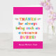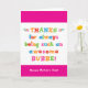 Tu appelles ta grand-mère Bubbe, pas grand-mère. (Bubbe signifie grand-mère en yiddish.) Imaginez à quel point Bubbe sera excité de recevoir une carte de fête des mères qui lui sera adressée en particulier ! Votre bubbe aimera aussi le design amusant et coloré de cette carte qui dit "Merci d'être toujours un Bubbe si génial! Bonne fête des mères !" Rendre cette carte personnalisable ! Cliquez sur "Edit Design", "Inside Bottom/Right : Text & Images", "Text" et "Add text" pour écrire votre propre message personnalisé à Bubbe à l'intérieur!