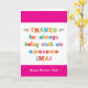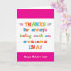 Tu appelles ta mère Ima, pas maman. (Ima signifie mère en hébreu.) Imaginez à quel point Ima sera excitée de recevoir une carte de fête des mères qui lui sera adressée en particulier ! Votre ima aimera aussi le design amusant et coloré de cette carte, basé sur le texte qui dit "Merci d'être toujours un Ima si génial! Bonne fête des mères !" Rendre cette carte personnalisable ! Cliquez sur "Edit Design", "Inside Bottom/Right : Text & Images", "Text" et "Add text" pour écrire votre propre message personnalisé à Ima intérieur !