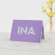 Carte de fête des mères pour Ina. Tu appelles ta mère Ina, pas maman. (Ina signifie mère en tagalog / philippin.) Imaginez à quel point Ina sera excitée de recevoir une carte de fête des mères qui lui sera adressée en particulier ! Votre porcelaine aimera aussi le magnifique design floral de cette carte qui dit "Ina" écrit dans de petites fleurs blanches sur le devant, avec un arrière - plan violet, et "Bonne fête des mères !" écrit dans de petites fleurs blanches à l'intérieur. Rendre cette carte personnalisable ! Cliquez sur "Edit Design", "Inside Bottom/Right : Text & Images", "Text" et "Add text" pour écrire votre propre message personnalisé à Ina intérieur !