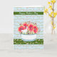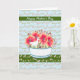 Carte de fête des mères pour votre maman avec de jolies fleurs roses foncées et un canard blanc dans un bol, un arrière - plan floral avec une couleur bleu clair. A un look peint. Les mots à l'intérieur peuvent être changés. Merci à Hungryjpeg et Creative Fabrica pour certains des éléments du design.