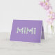 Carte de fête des mères pour Mimi. Tu appelles ta grand-mère Mimi, pas grand-mère. Imaginez à quel point Mimi sera excité de recevoir une carte de fête des mères qui lui sera adressée en particulier ! Votre mimi aimera aussi le magnifique design floral de cette carte de fête des Mères qui dit "Mimi" écrit en petites fleurs blanches sur le devant, avec un arrière - plan violet, et "Bonne fête des Mères !" écrit en petites fleurs blanches à l'intérieur. Rendre cette carte personnalisable ! Cliquez sur "Edit Design", "Inside Bottom/Right : Text & Images", "Text" et "Add text" pour écrire votre propre message personnalisé à Mimi intérieur!