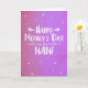 Carte de fête des mères pour Nan. Si vous appelez votre grand-mère Nan au lieu de grand-mère, cette carte de fête des mères est parfaite pour elle. Votre nan va adorer le design amusant de cette carte de la Fête des Mères rose, violet et blanc bulle qui dit "Bonne fête des Mères à mon Nan préféré !" Rendre cette carte personnalisable ! Cliquez sur "Edit Design", "Inside Bottom/Right : Text & Images", "Text" et "Add text" pour écrire votre propre message personnalisé à Nan intérieur !