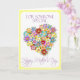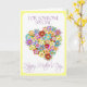 Cette carte de fête des mères a un beau bouquet en forme de coeur pour quelqu'un spécial pour la fête des mères enverra un message spécial à la femme que vous aimez. Fait dans de belles couleurs printanières de jaune, lavande, rose, turquoise, bleu et vert, avec le texte violet, vous pouvez facilement customiser le message intérieur sur cette carte de fête des mères ou le laisser tel quel.