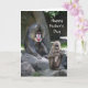 Carte de fête des pères comportant une belle photographie d'un singe de Mandrill de mâle alpha avec le visage rouge et blanc coloré se reposant derrière un jeune singe de Mandrill. En dehors de lit : Fête des pères heureuse. À l'intérieur de lit : Fête des pères heureuse au mâle alpha de la troupe. Carte personnalisable - changez ou enlevez le type à la page de produit