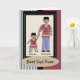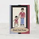 Personnalisez cette carte mignonne pour la fête des pères ou l'anniversaire avec des noms et monogrammes sur des images teintées de peau foncée de père et jeune fils habillés en maillots assortis. Tout le texte est formaté et prêt à être édité dans l'éditeur de texte Zazzle facile. Créé en partie avec des graphiques d'Alice Smith de Whimsy Primsy sur www.digiwebstudio.com.