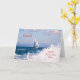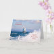 Un yacht naviguant au-dessus de l'océan avec des vagues éclatantes. Une carte de Fête des pères amusante pour un père. Une carte pour tous ceux qui aiment les bateaux et l'océan. Le message interne peut être modifié en fonction de vos besoins.