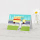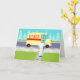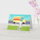 Si vous avez soif pour un design moderne du milieu du siècle, cette carte de Fête des pères Retro Milkman est pour vous! Le style des années 60, minimaliste design d'art, comprend un milkman dédié qui fait ses rondes matinales. L'homme blond porte un pantalon blanc laiteux, une chemise et un casquette avec une cravate arc noir, une ceinture et des chaussures. Ce livreur de calcium et de vitamine D se déplace sur le trottoir avant, transportant dans des bouteilles de verre, un approvisionnement hebdomadaire de lait frais sain d'une famille. Le journal du matin est toujours sur le trottoir. Ne vous inquiétez pas. Seules les bonnes nouvelles sont autorisées dans cette ville ! Le trottoir est entouré par le type de pelouse verte que l'on trouve uniquement dans les petites villes et banlieues. Il y a aussi une clôture blanche pour les piquets de grève. Dans la rue, on voit le doux tour du milkman ! C'est un camion jaune crémeux, au lait avec une bande rouge sur le côté et des lettres rouges qui dit, "LAIT". De l'autre côté de la rue, on aperçoit un ciel d'aqua et les silhouettes bleu clair des cèdres. Ce dessin animé kitsch ressemble à une scène tirée d'une vieille sitcom de télévision. Apportez le gâteau jaune au glaçage au chocolat, le gâteau officiel de toutes les femmes au foyer de la télévision et de leurs familles privilégiées ! Construire des os forts n'a jamais été aussi bon ! A l'intérieur de cette carte de voeux intelligente, on dit "Bonne Fête des pères ?" Cette carte de Fête des pères non nauséabonde est parfaite pour les papas avec un sens de l'humour.