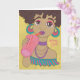 Laissez-vous séduire par cette carte de fête illustrant une jeune femme au style exotique, à la fois élégant et vibrant. Ses traits lumineux, ses couleurs chaleureuses et son allure unique apportent une touche d’évasion à chaque occasion.