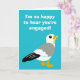 Vous cherchez une carte de fiançailles humoristique et pas trop mièvre ? Cette carte de goéland est parfaite pour envoyer un message de félicitations avec une touche d'humour. Et le message à l'avant et à l'intérieur est prêt à être personnalisé pour que vous puissiez ajouter un message personnalisé ou utiliser cette carte pour n'importe quelle occasion. Le devant présente une illustration de style cartoon d'un goéland avec une frite dans le bec et le message "Je suis tellement heureux d'apprendre que vous êtes fiancés !". Le message à l'intérieur dit : "En fait, je suis encore plus heureux qu'un goéland avec une frite !".
