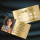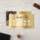 Construisez la fidélité des clients avec style grâce à cette carte de fidélité aux affaires en or. L'avant comporte des cercles élégants pour marquer chaque achat ou visite, tandis que l'arrière comprend de l'espace pour votre logo d'entreprise, le code QR, les coordonnées de contact. Idéal pour les salons, les cafés, les boutiques et les entreprises de services qui veulent faire revenir les clients. Conçu de façon professionnelle pour faire de votre marque une marque qui se démarque en ligne et en personne. Sur le devant : Ajoutez-vous la remise. Retour : Personnalisez et ajoutez votre nom, titre, numéro de téléphone, courrier, adresse du site Web, logo de l'entreprise. icônes Facebook et Instagram.