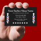Barber shop cartes de visite dans un agencement simple avec lumières de barbier dans l'arrière - plan et les cases à cocher qui ajoutent une touche décorative et peuvent être utilisés comme récompenses ou modèle de fidélité client.