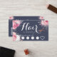 Carte de fidélité moderne et élégante pour coiffeurs avec ciseaux d'or rose en faux cuivre, roses roses et blanches et police calligraphie élégante.