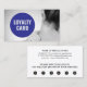 Modèle de carte de fidélité moderne avec une photo de studio professionnel du dos d'une femme. Parfait pour les massothérapeutes, spas. Design épuré moderne avec photo noir et blanc, cercle bleu et polices de caractères audacieuses.