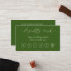 Cartes de fidélité verte et verte olive modernes avec un design simple et minimal avec "carte de fidélité" dans une calligraphie élégante avec votre offre sur le devant. Le dos contient vos informations de contact d'entreprise ainsi que des icônes de médias sociaux et un code QR optionnel dans une mise en page minimaliste. Le code QR peut être supprimé et les icônes des médias sociaux peuvent être modifiées ou supprimées dans l'outil de conception.