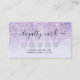 Cartes de fidélité aux entreprises avec un effet de parties scintillant violet. Le dos de la carte peut être personnalisé avec votre logo, votre site Web et les médias sociaux.