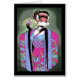Sur cette carte colorée, un beau renard déguise en tant que geisha gracieux.