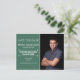 Carte postale "Sauver la date" de graduation personnalisée avec photo verte. Ajoutez votre photo et vos informations.