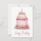 Célébrez les anniversaires avec style avec cette carte de voeux magnifiquement illustrée avec un gâteau rose à deux niveaux orné de délicates fleurs d'aquarelle et une seule bougie bleue. Parfait pour envoyer des voeux chaleureux à des amis, à des familles ou à des proches !