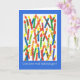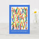 Carte d'anniversaire aux couleurs vives avec bougies et "Joyeux anniversaire" en norvégien, tirée d'un collage en papier peint à la main par Judy Adamson. L'intérieur est laissé vide pour votre propre message.