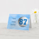 Une grande carte de plaisir pour un golfeur ou une occasion de golf. Une balle de golf volant à travers l'air avec 87 écrits dessus.