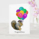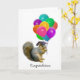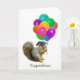 Un écureuil diplômé tient un tas de ballons colorés. Envoyez vos félicitations avec cette carte amusante.