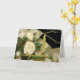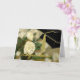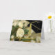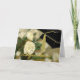 Carte de voeux élégante de remise de diplômes, avec une photo d'oeillets blancs, en tant qu'arrière - plan. Graphiques d'un casquette de mortier d'un diplômé noir, avec un goût de ton or, dans le coin supérieur droit et le texte du script graphique de ton or dit Félicitations, sur le devant. Le message d'accueil en noir, à l'intérieur, est prêt à personnaliser pour lire ce que vous voulez. Jolie carte à votre fille diplômée préférée.