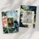 Joli jardin fleuri dans les tons bleus avec des accents rose vif combiné avec une bordure dorée pour un beau look élégant. Une police sans serif a été choisie pour correspondre à l'élégance des illustrations. Consultez notre magasin pour plus d'articles correspondants.