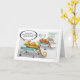 L'image de la carte est celle d'hippocampes mâles enceintes dans un service de "paternité". Dans le monde naturel, après l'accouplement, l'hippocampe mâle transporte les oeufs dans une poche jusqu'à ce que de minuscules hippocampes entièrement développés émergent. Texte intérieur : "Félicitations et bonne chance pour votre grossesse". Faits amusants sur les hippocampes listés à l'arrière.