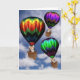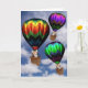 Carte d'anniversaire. Des chatons dans des ballons à air chaud sur un arrière - plan du ciel.