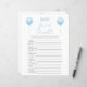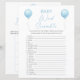 Carte de jeu Baby shower bleu double face